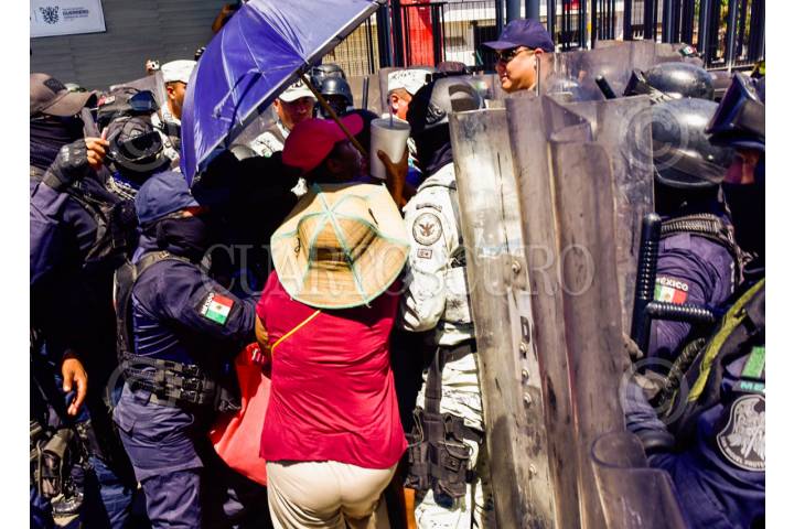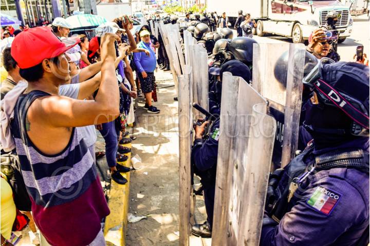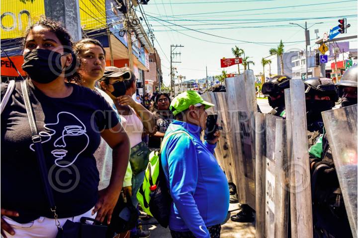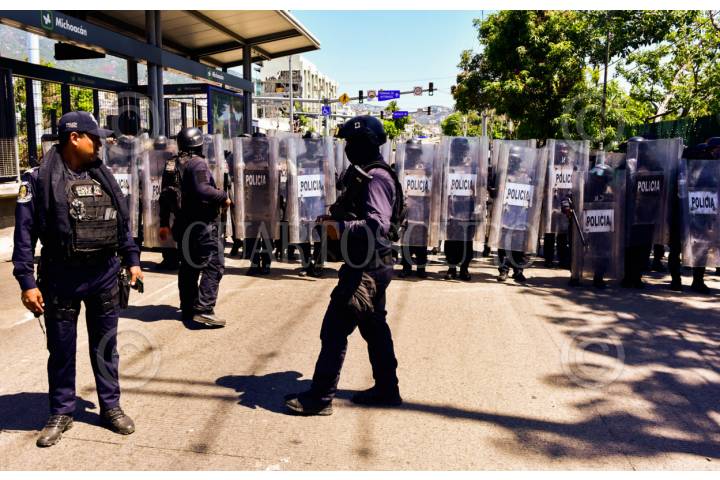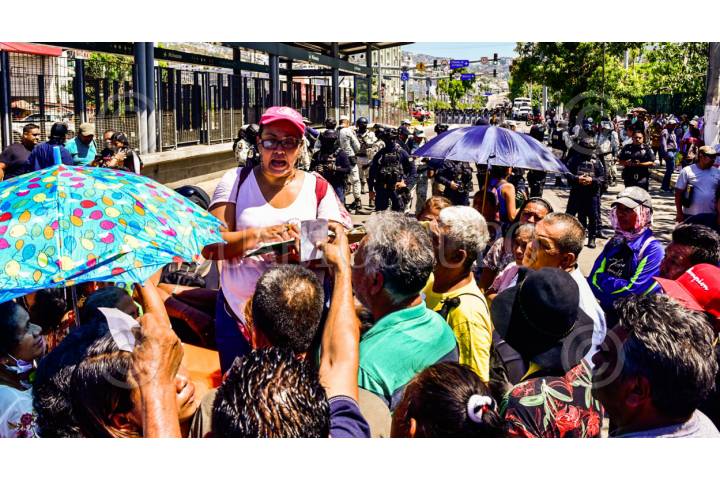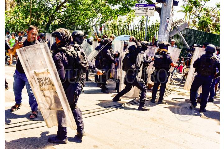 ACAPULCO, GUERRERO. 22FEBRERO2024.- Policías antimotines del estado y agentes de la Guardia Nacional desalojaron a un grupo de personas que mantienen bloqueando la avenida Cuauhtémoc de Acapulco, los manifestantes exigían ser censados por ser afectados por el huracán Otis, después de bloquear un par de horas y de que mandos de la policía dialogarán con ellos para pedirles que liberarán la vía, fueron desalojados, sin hubiera personas lecionadas y solo una mujer fue detenida y trasladada a los separos de la policía. FOTO: CARLOS CARBAJAL/CUARTOSCURO.COM