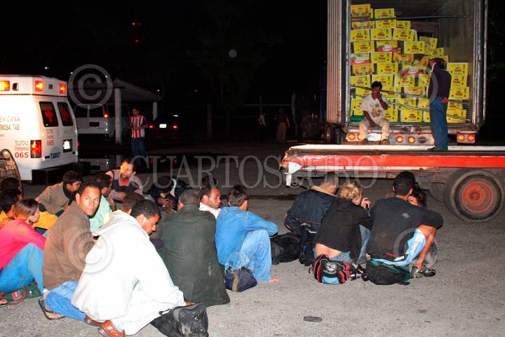 VILLAHERMOSA, TABASCO, 28SEPTIEMBRE2006.- La madrugada de hoy fue detenido un camión tipo trailers con productos de bananos y que en su interior de un compartimiento oculto fueron localizados al menos un centenar de indocumentados o ilegales centreoamericanos; Honduras, Guatemala, Panama y El Salvador. Aunque la Policía Federal Preventiva Comisaria Tabasco realizo el aseguramiento, estos se encuentran en total hermetismo con la informacion ya que disvarian con el lugar de la localizacion del camión e indocumentados. FOTO: MARCO POLO GUZMÁN HERNÁNDEZ/CUARTOSCURO.COM