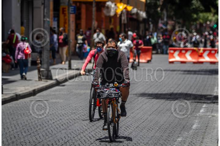 Ciclistas aprovechan el cierre parcial de las calles principales del Centro histórico para tomarlas como ciclovías
