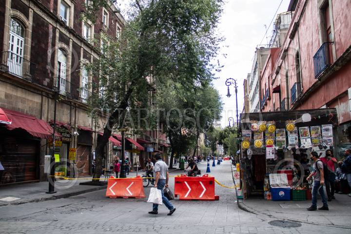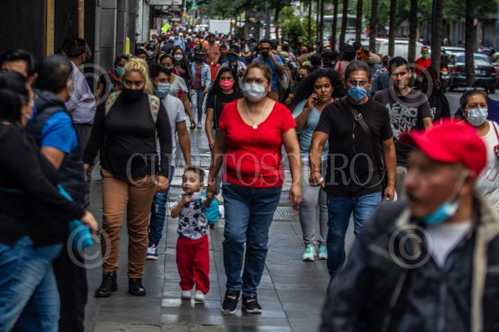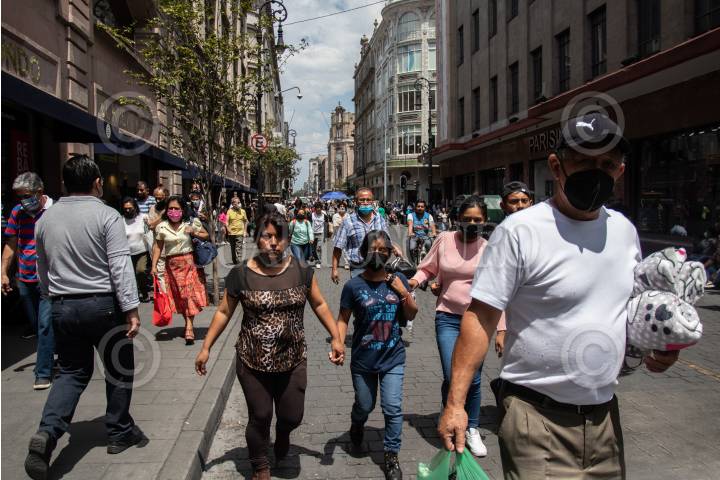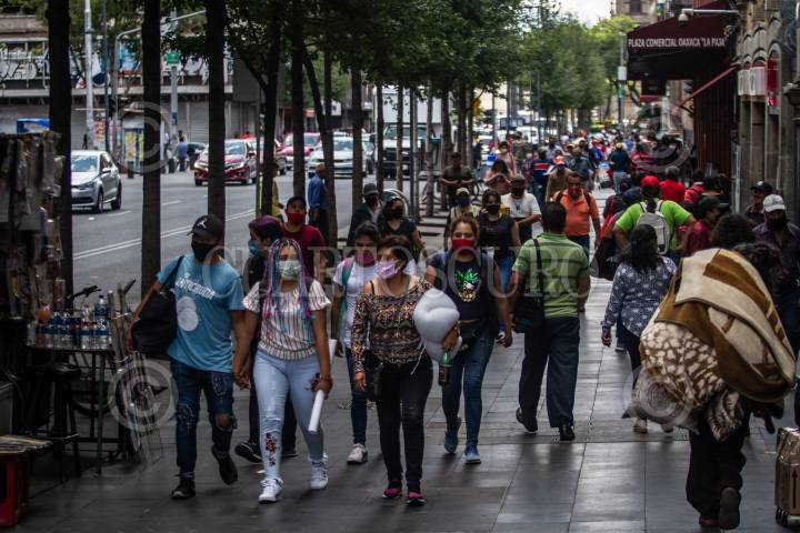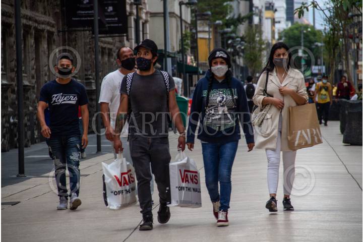 Decenas de personas acuden al Centro Histórico para trabajar, realizar compras o turistear. Desde el pasado 29 de junio se activo el semaforo naranja por lo que gradualmente se han reabierto los comercios que no eran de primera necesidad