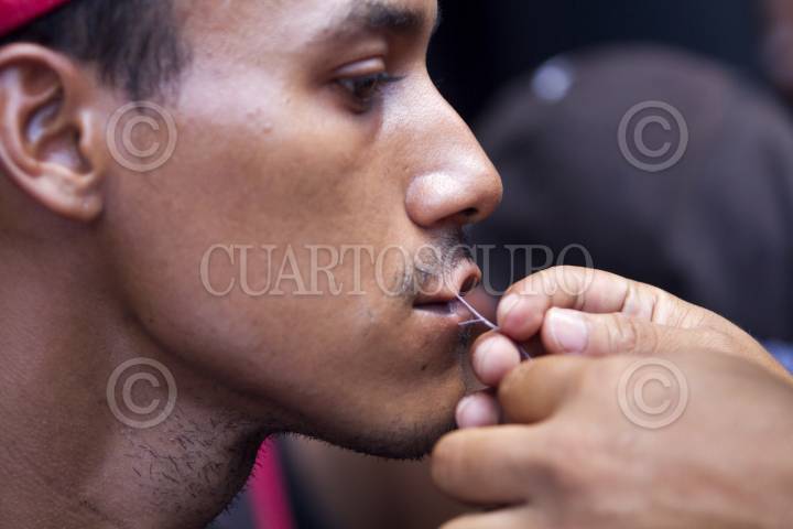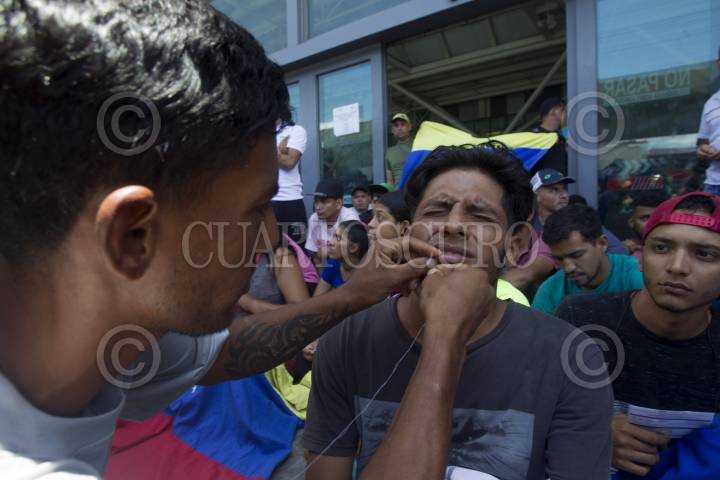 Decenas de migrantes procedentes de Venezuela, Nicaragua y Guatemala, cosieron sus labios en forma de protesta al quedarse varados en la central de autobuses de Monterrey. Los migrantes tienen su pasaje pagado hasta Ciudad Acuña, Coahuila, sin embargo el Instituto Nacional de Migración no los deja continuar su viaje y tampoco han recibido un reembolso por sus boletos. A Monterrey han arribado al menos dos mil migrantes que viajaron en caravana desde Chiapas.
