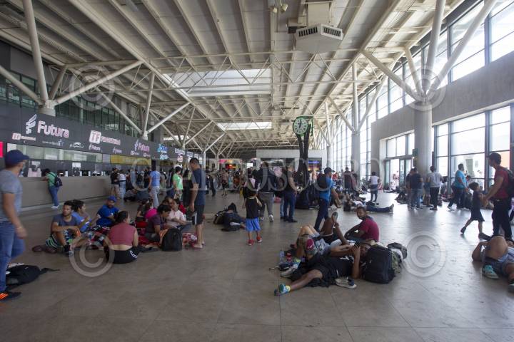 Cientos de migrantes procedentes de Venezuela, Ecuador, Guatemala y Cuba principalmente, se quedan varados en la central de autobuses de Monterrey, después que la policía de Coahuila y el Instituto Nacional de Migración en Saltillo no les permitiera el paso hacia la ciudad fronteriza de Acuña y fueron trasportados a Monterrey donde buscan seguir su destino hacia Estado Unidos.