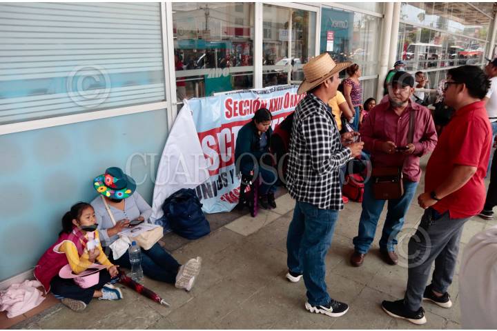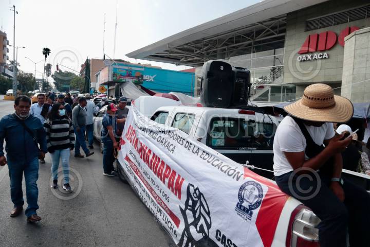 Profesores de la Sección 22 de la Coordinadora Nacional de Trabajadores de la Educación cerraron la terminal de autobuses de primera clase ADO en la capital de Oaxaca, como parte de los acuerdos tomados en su asamblea estatal para exigir el cumplimiento a su pliego de demandas; este día continúan en mesa de negociación con el gobierno estatal.