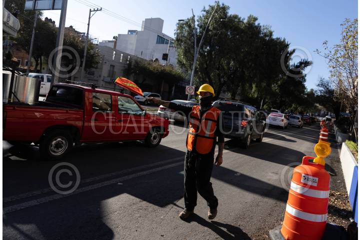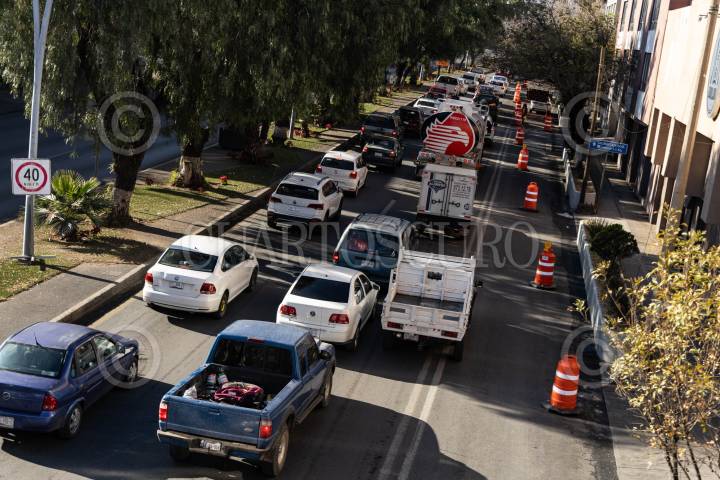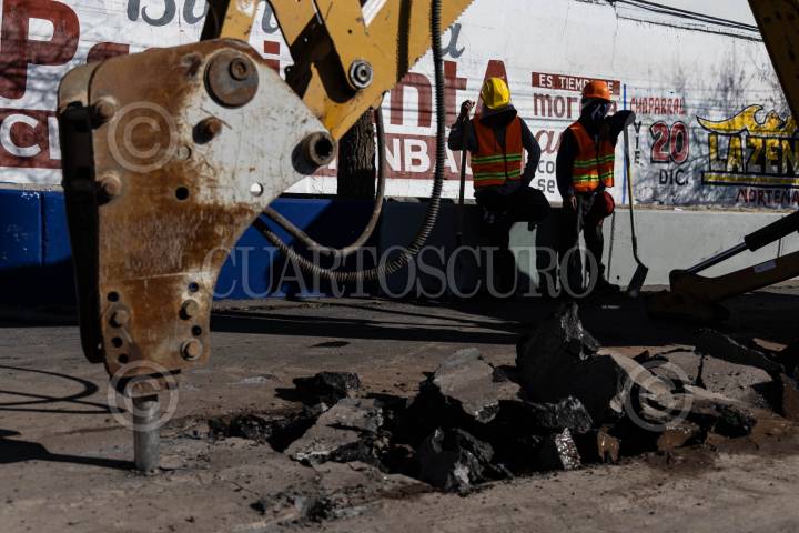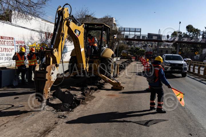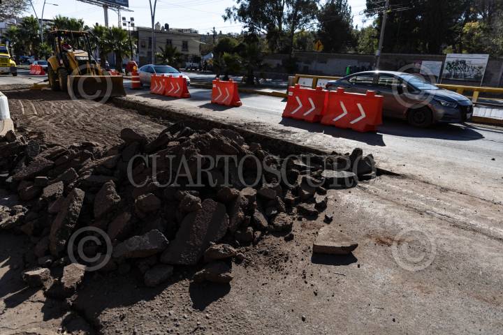 ZACATECAS, ZACATECAS, 21DICIEMBRE2024.- Comenzaron los trabajos del Viaducto elevado en el Bulevard Adolfo López Mateos, en pleno centro de la capital. Alrededor de las 6 de la mañana trabajadores de la empresa Grupo Hycsa, quien obtuvo el contrato para la construcción de la obra de casi tres mil setecientos millones de pesos; comenzaron cierre parciales y apertura del asfalto en la zona central. Esto provocó un gran congestionamiento ya que fueron cerrados dos carriles de los tres del sentido sur a norte. FOTO: ADOLFO VLADIMIR /CUARTOSCURO.COM