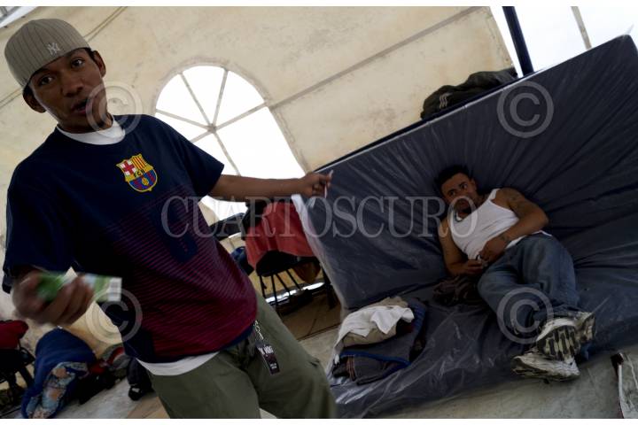 TULTITLAN, ESTADO DE MÉXICO, 30JULIO2012.- Migrantes de Honduras, el Salvador y Guatemala descansan en un albergue en espera del tren que les permitirá continuar con su viaje a la frontera norte. El albergue está ubicado debajo de un puente en la Avenida Independencia de este municipio. FOTO: PEDRO ANZA /CUARTOSCURO.COM