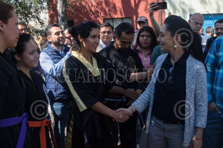 CIUDAD DE MÉXICO, 03FEBRERO2019.- La Jefa de Gobierno, Claudia Sheinbaum Pardo, encabezó la inauguración del segundo centro comunitario denominados "Pilares", en la alcaldía de Azcapotzalco, el inmueble también bautizado como Xalli cuenta con una ciberescuela con internet gratuito y profesores para acabar sin costo los estudios de nivel básico y medio superior. La Jefa de Gobierno señalo que este año se harán 150 pilares de los 300 que planea construir en su administración. FOTO: MOISÉS PABLO /CUARTOSCURO.COM
