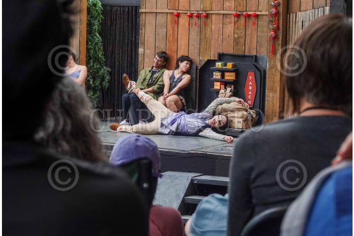 CIUDAD DE MÉXICO, 16FEBRERO2025.- Aspectos de la obra "El alma buena de Seuzán" en la explanada de la fuente del Centro Cultural Universitario. "EL alma buena de Seuzán o La buena persona de Seuzán", es una obra dramática del autor Bertolt Brecht, la historia se desarrolla cuando tres dioses descienden a la tierra en busca de almas buenas para confirmar que sus mandatos y preceptos divinos aún son válidos. Su búsqueda resulta un fracaso hasta que llegan a la ciudad de Sezuán y encuentran a Shen-Te, una joven que les brinda refugio para que descansen, ante tal acto de bondad, los dios le entregan dinero para un pequeño negocio y con la misión de seguir siendo buena, sin embargo, esta misión complica la vida de la joven, pues la lleva a confrontarse consigo misma. FOTO: MAGDALENA MONTIEL VELÁZQUEZ/CUARTOSCURO.COM