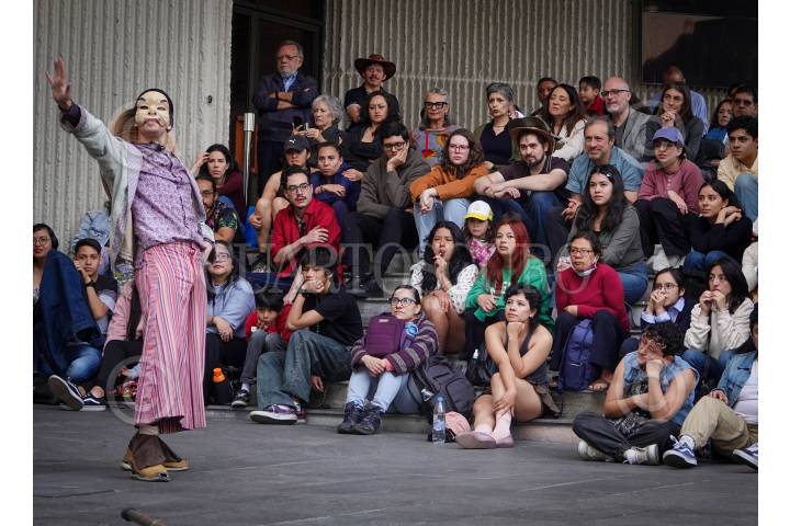 CIUDAD DE MÉXICO, 16FEBRERO2025.- Personas disfrutan de la obra "El alma buena de Seuzán" en la explanada de la fuente del Centro Cultural Universitario. "EL alma buena de Seuzán o La buena persona de Seuzán", es una obra dramática del autor Bertolt Brecht, la historia se desarrolla cuando tres dioses descienden a la tierra en busca de almas buenas para confirmar que sus mandatos y preceptos divinos aún son válidos. FOTO: MAGDALENA MONTIEL VELÁZQUEZ/CUARTOSCURO.COM
