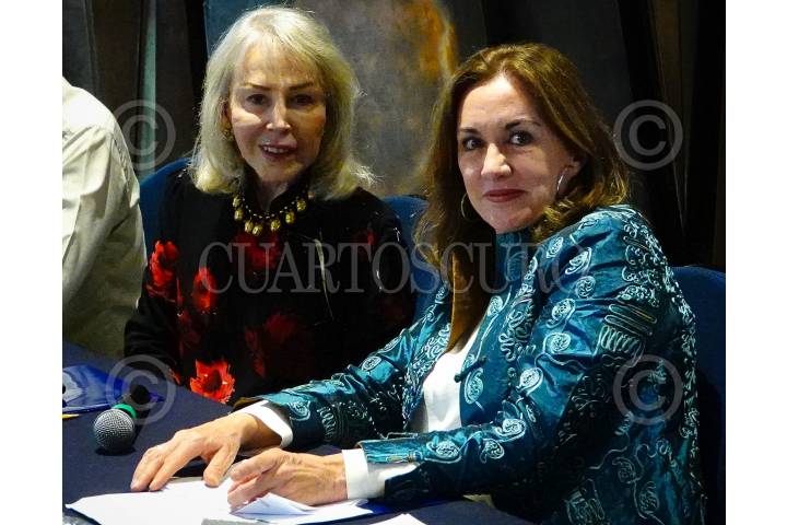 Silvia Lemus y Rosa Beltran, durante la conferencia de prensa del Premio Internacional Carlos Fuentes a la Creación Literaria en el Idioma Español 2023.