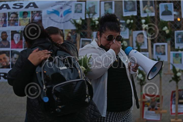 Madres de personas victimas de desaparición forzada, lloran y se abrazan durante un acto simbólico sus seres queridos desaparecidos, esto al finalizar la misa que se realizo esta tarde en el Sagrario Metropolitano, en el Centro de Guadalajara, por el Día Internacional de las Victimas de Desapariciones Forzadas.