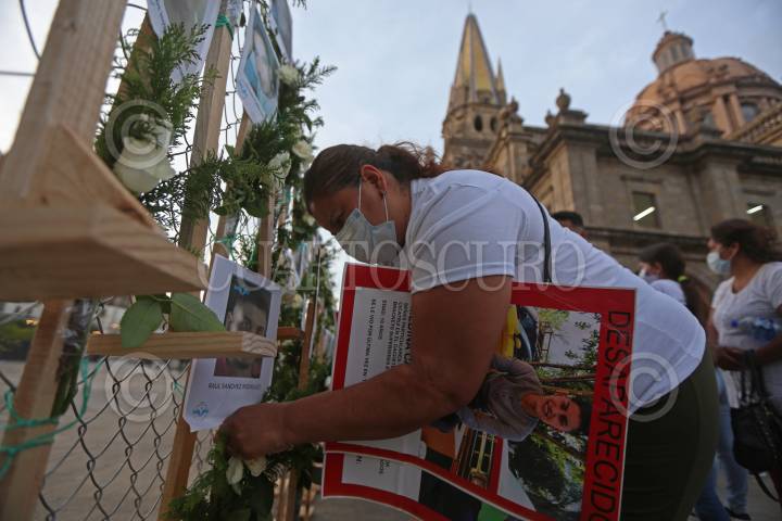 Familiares de personas desparecidas, protestan en el Centro de Guadalajara, este Día Internacional de Desapariciones Forzadas.