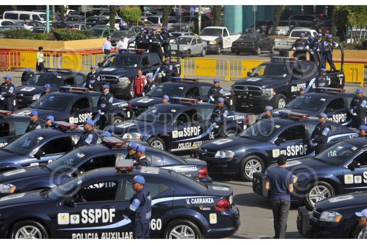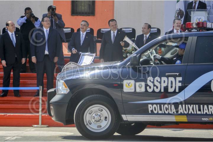 MÉXICO, D.F., 24FEBRERO2014.- La delegación Venustiano Carranza adquirió 37 nuevas patrullas con una inversión de más de 17 millones de pesos, el día de hoy fueron presentadas en la explanada de la delegación con la presencia de Miguel Ángel Mancera, jefe de gobierno capitalino. FOTO: DIEGO SIMÓN SÁNCHEZ /CUARTOSCURO.COM