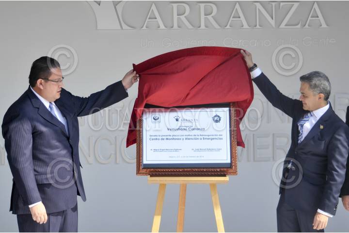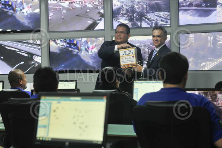 MÉXICO, D.F., 24FEBRERO2014.- Miguel Ángel Mancera, jefe de gobierno capitalino y José Manuel Ballesteros, jefe de la delegación Venustiano Carranza; re inauguraron el Centro de Monitoreo y Atención a Emergencias en la Delegación Venustiano Carranza, donde vigilaran 22 personas las videocámaras que se encuentran por toda la delegación. FOTO: DIEGO SIMÓN SÁNCHEZ /CUARTOSCURO.COM