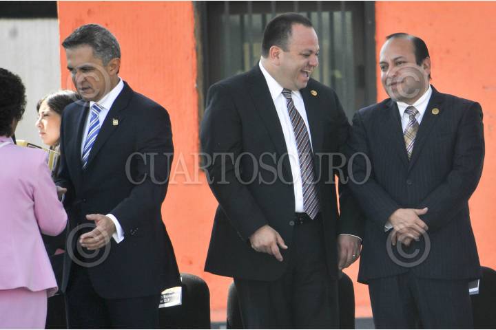 MÉXICO, D.F., 03DICIEMBRE2014.- Miguel Ángel Mancera, jefe de gobierno capitalino; Miguel Ángel Cámara, jefe delegacional en Xochimilco y Jesús Rodríguez Almeida, secretario de Seguridad Pública, encabezaron la inauguración del programa de Alarmas Vecinales y el centro de Monitoreo de la delegación Xochimilco, ubicado en el Deportivo Xochimilco. FOTO: DIEGO SIMÓN SÁNCHEZ /CUARTOSCURO.COM