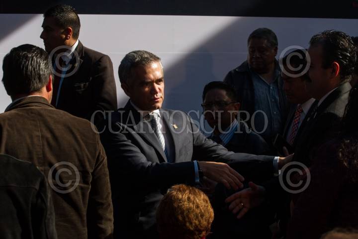 MEXICO, D.F., 17FEBRERO2015.- Miguel Ángel Mancera, jefe de Gobierno del D.F., durante la inauguración del Centro de Monitoreo de Alarmas Vecinales y Seguridad Ciudadana en la delegación Coyoacán. FOTO: ISAAC ESQUIVEL /CUARTOSCURO.COM