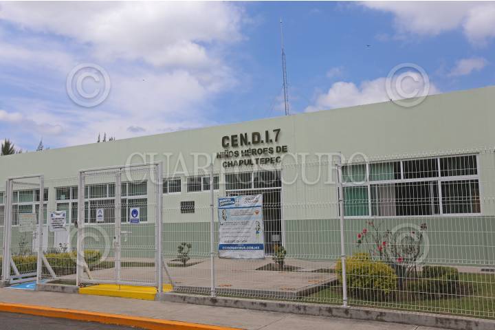 Imagen del exterior del Centro de Desarrollo Infantil Niños Héroes de Chapultepec, donde personal del mismo inmueble se encargan de cuidar, atender y educar a niños hijos del personal castrense en servicio activo.