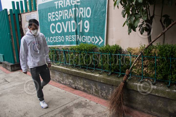Una persona con cubrebocas pasa frente al Triage de Hospital General.