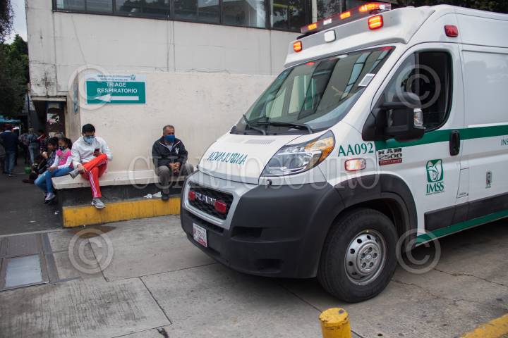 Paramédicos trasladan a una persona con síntomas de Covid-19 al Triage del Centro Médico Siglo XXI.