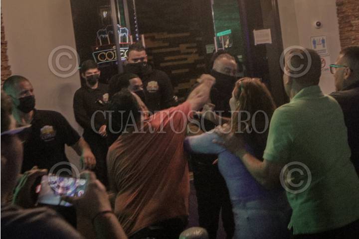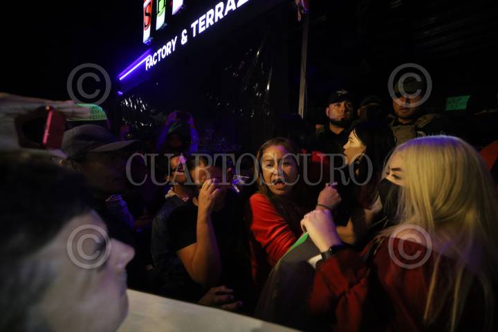 Manifestantes rompieron una parte de la fachada del bar y accesaron a cuartos que, de acuerdo a palabras de los fiscales, ya se habían revisado, sin embargo, en estos mismos cuartos se encontró un arma, altares con billetes y balas.