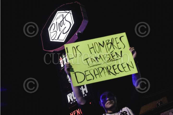 MEXICALI BAJA CALIFORNIA, 16ABRILMARZO2023.- Ante la creciente cantidad de secuestros en el llamado 'triángulo de las bermudas', familias afectadas y comunidad se manifiestan en el Bar SHOTS de Mexicali, en donde el pasado 8 de abril desaparecieron 3 hombres