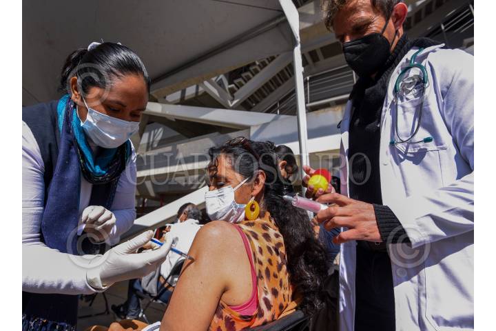 Adultos de 50 a 59 años de edad acudieron a recibir su refuerzo de la vacuna contra COVID-19 en el estadio Nemesio Diez.