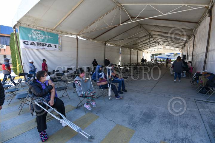 Poca asistencia se registró durante la aplicación del refuerzo de la vacuna contra COVID-19 a personas de 30 a 39 años de edad en el módulo ubicado en el Tecnológico Regional de Toluca en el municipio de Metepec.