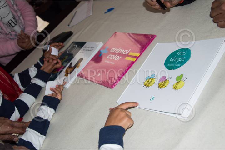 MÉXICO, D.F., 15NOVIEMBRE2015.- El escritor para niños Rodrigo Vargas, presentó su colección de libros interactivos durante la Feria Internacional del Libro Infantil y Juvenil, los cuales motivan a los infantes un acercamiento más fácil hacía la lectura. La actividad se realizó en las instalaciones del Centro Nacional de las Artes (CENART) donde Benjamin Briseño fue el narrador y actor del libro “Tres Abejas” uno de los tres títulos presentados. Al final de la presentación Rodrigo firmo los libros que los asistentes adquirían en el stand. FOTO: GALO CAÑAS /CUARTOSCURO.COM