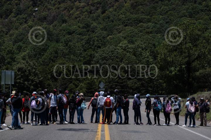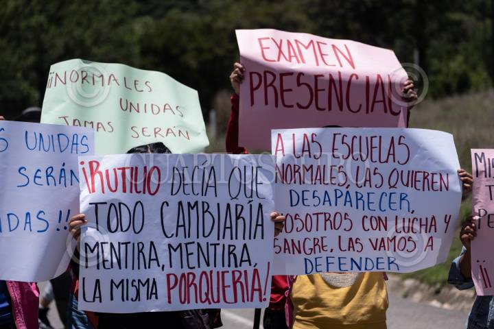 Estudiantes normalistas marchan para exigir la liberación de los 95 estudiantes detenidos el día de ayer.