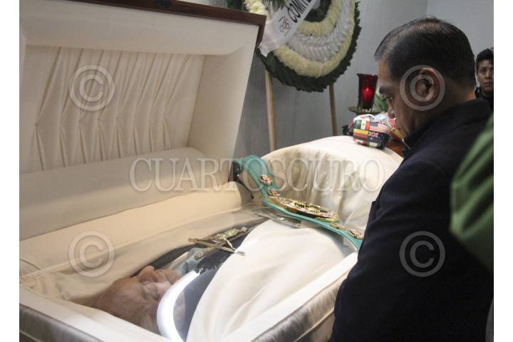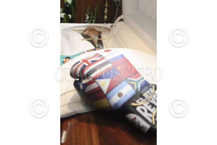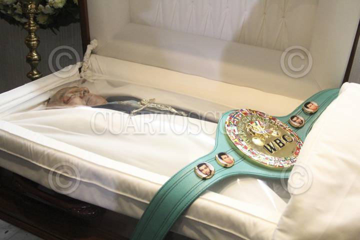 MÉXICO, D.F., 16ENERO2014.- Amigos y familiares del José Sulaiman, presidente del Consejo Mundial de Boxeo velan sus restos en el Panteón Francés de Legaría. En la imagen José Sulaimán. En la imagen Ana Maria "La Guerrera" Torres. FOTO: SAÚL LÓPEZ /CUARTOSCURO.COM