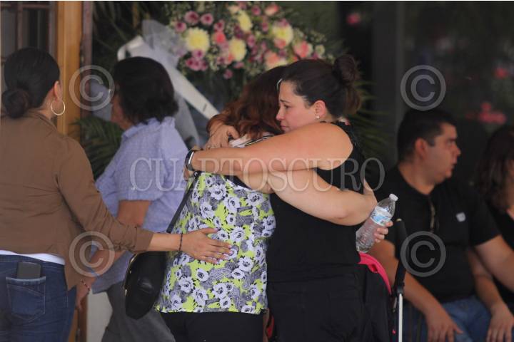 CIUDAD JUÁREZ, CHIHUAHUA, 07AGOSTO2019.- Familiares y amigos dan el sentido pésame a la familia de la maestra Elsa Mendoza, unas de las 7 víctimas chihuahuenses del ataque armado en El Paso, Texas, y cuyo cuerpo arribó hoy a Ciudad Juárez para ser velada FOTO: NACHO RUIZ /CUARTOSCURO.COM