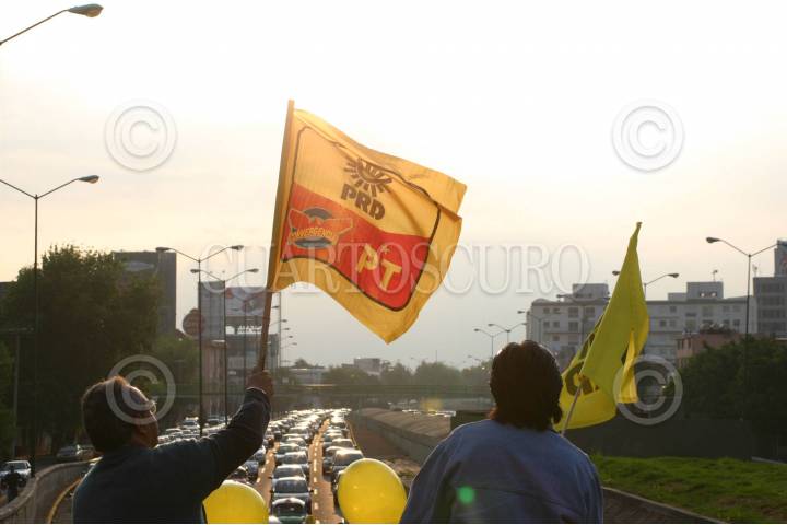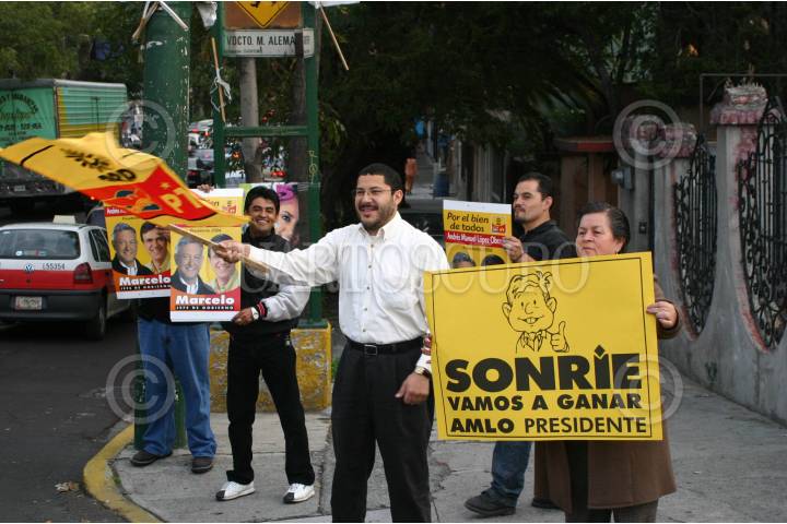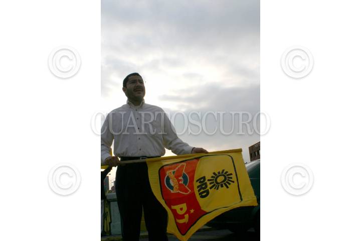 MÈXICO,D.F.19MAYO2006.- Martìn Batres, Presidente del PRD en el Distrito Federal, acudiò a la calle de Monterrey con Viaducto para manifestar su apoyo, ante la cercanìa de las elecciones, a favor de Andrès Manuel Lòpez Obrador, Candidato a la Presidencia de la Repùblica por el PRD. FOTO: M. Tulia Pèrez Bocanegra/CUARTOSCURO.COM