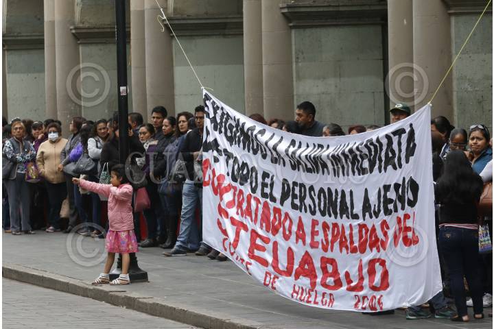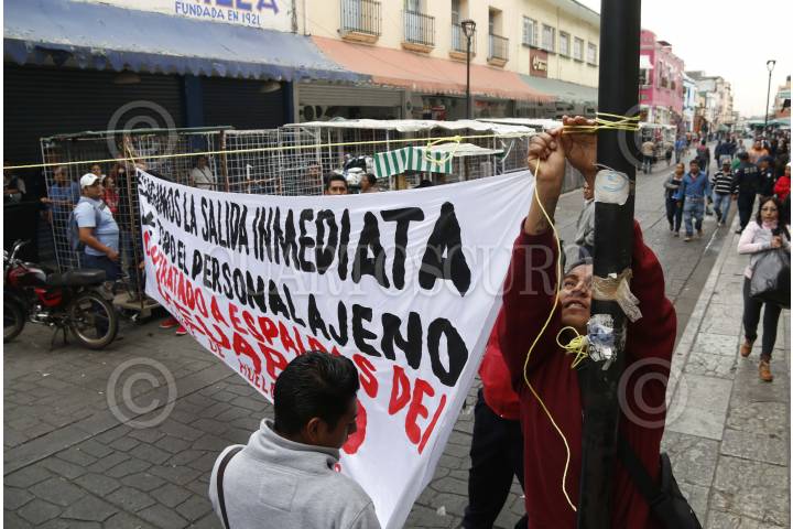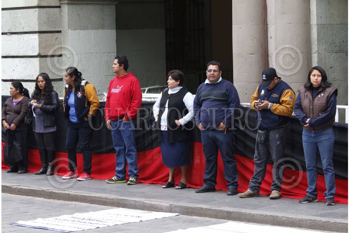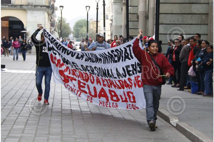 OAXACA, OAXACA, 20ENERO2016.- Integrantes del Sindicato de Trabajadores y Empleados de la Universidad Autónoma Benito Juárez de Oaxaca (Steuabjo) realizaron este miércoles un cerco en el palacio de gobierno para demandar al ejecutivo, Gabino Cué Monteagudo cumpla con lo pactado en una minuta de acuerdo signada desde el 15 de enero del año 2015. Esta actividad obligó al mandatario a cancelar un evento el cual sostendría con estudiants del Cecyte en el que se entregarían distintos apoyos. FOTO: ARTURO PÉREZ ALFONSO /CUARTOSCURO.COM