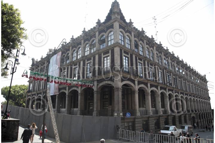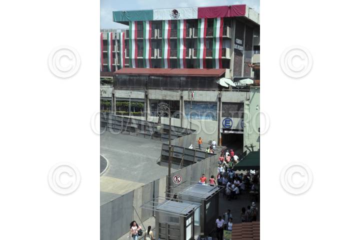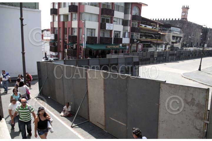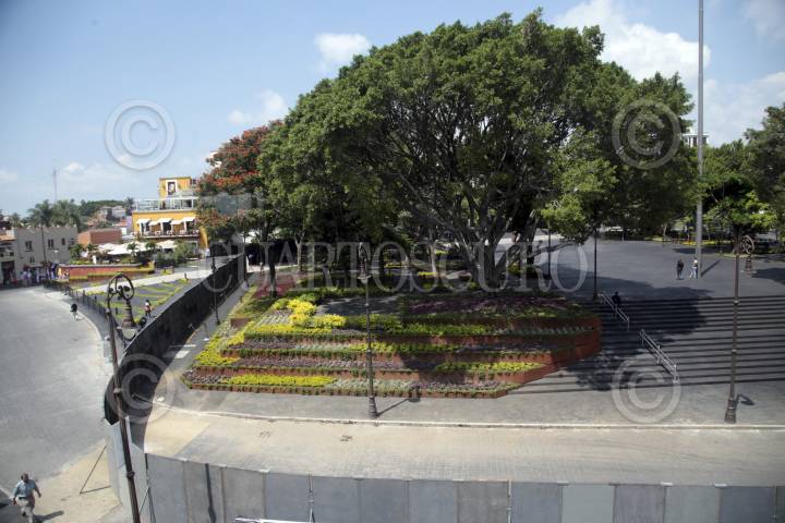 CUERNAVACA, MORELOS, 14SEPTIEMBRE2016.- En el día de su inauguración, la Plaza de Armas de Cuernavaca amaneció cercada por vallas metálicas de dos metros de altura. A las 21:00 horas está previsto que el gobernador del estado, Graco Ramírez Abreu, inaugure la remodelada plaza central. La remodelación costo 49 millones de pesos y duró siete meses. Además del muro metálico -que resguardará la apertura- policías con equipo anti motín se encuentran en el sitio. El cerco rodea toda la Plaza de Armas, abarcando la calle Galeana, Gutenberg, y Juárez. La acción provocó malestar entre los ciudadanos que circulan por la zona. FOTO: MARGARITO PÉREZ RETANA /CUARTOSCURO.COM