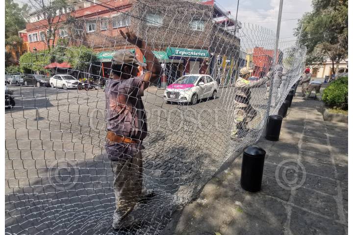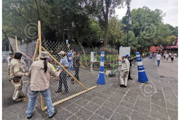 Los jardínes del centro de Coyoacán fueron rodeados por una malla de acero para evitar aglomeraciones de personas en estos días en donde se realizan los festejos del Día de Muertos.
