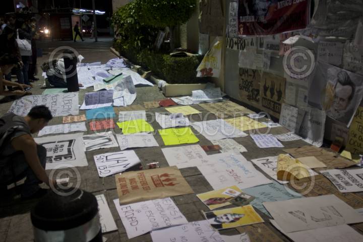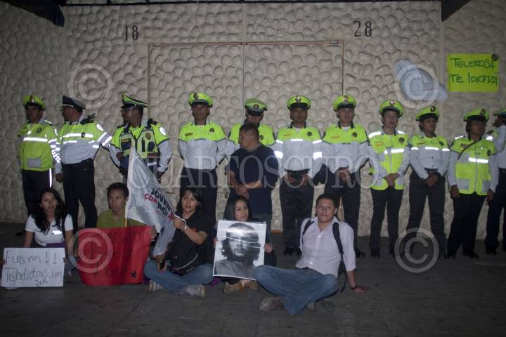 MÉXICO D.F., 26JULIO2012.- Integrantes del Movimiento #yosoy132 y miembros del Sindicato Mexicano de Electricistas entre otros, acamparon la noche de ayer en las inmediaciones de Televisa, esto en protesta por lo que consideran ellos el apoyo de la televisora a Enrique Peña Nieto en los pasados comicios presidenciales del 1 de Julio. El inmueble se encuantra custodiado por decenas de uniformados de la Secreatria de Seguridad Pública. FOTO: FRANCISCO RODRÍGUEZ /CUARTOSCURO.COM