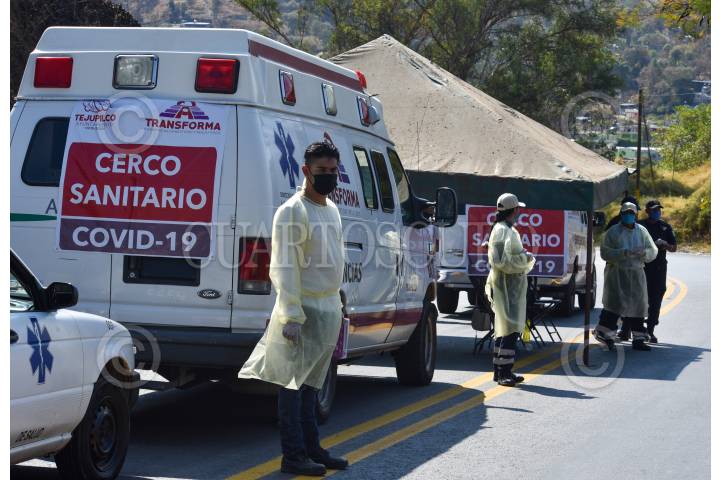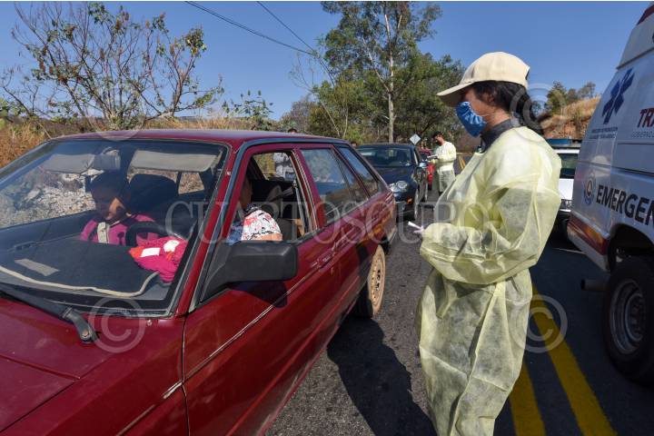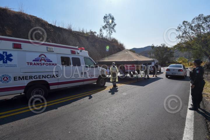 En la carretera Toluca-Tejupilco a la entrada de este municipio del sur del Estado de México fue instalado un Cerco Sanitario por COVID-19, informando a los automovilistas que hacer en caso de contagiarse, así como a donde acudir.
