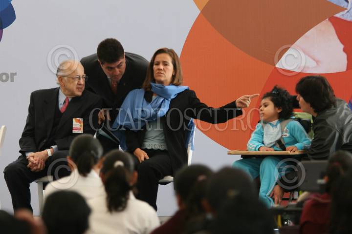 MÉXICO D.F., 03MARZO2009.- Margarita Zavala, esposa del Presidente, Felipe Calderón Hinojosa, acompañada de Cecilia Landerreche Gómez Morin, titular del DIF, entrego simbolicamente 400 sillas de ruedas especiales tipo PCI (Parálisis Cerebral Infantil) esto en el centro de rehabilitación, Gaby Brimer. FOTO: GUILLERMO PEREA/CUARTOSCURO.COM