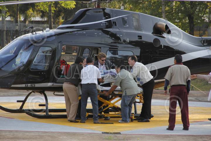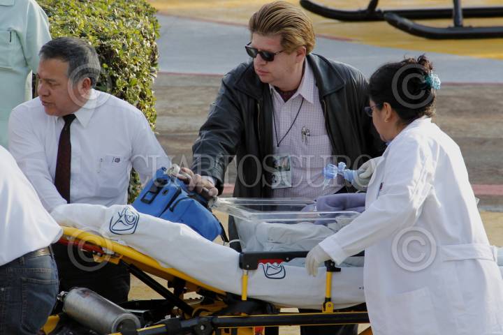 MÉXICO, D.F., 19ENERO2012.- Fue trasladado un Bebé con muerte cerebral del Estado de Guerrero a la ciudad de México, el cual, arribo en el helipuerto del Hospital Magdalena de las Salinas para que sus órganos sean Trasplantados en el Hospital La Raza. FOTO: LUIS CARBAYO/CUARTOSCURO.COM