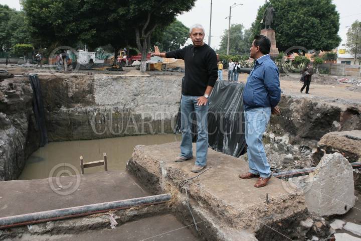 MÉXICO, D.F., 01AGOSTO2007.- Arqueologos del INAH descubrieron un centro las ruinas de un ceremonial de la cultura Mexica en la explanada de la delegacion Iztapalapa. En la imagen el delagado Horacio Martinez junto con arqueologos del INAH. FOTO: IVÁN MENDEZ/CUARTOSCURO.COM