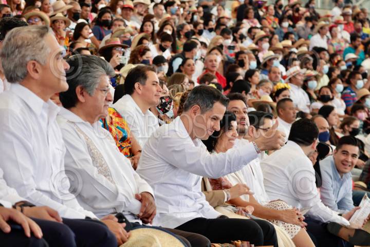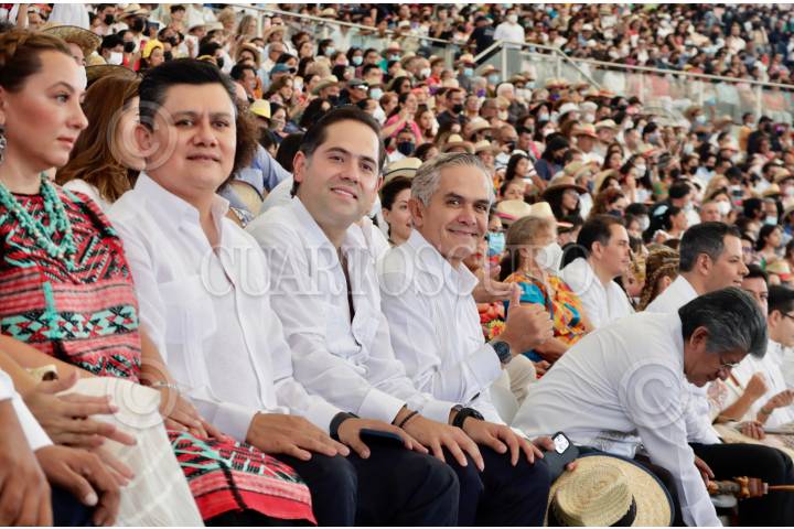 Concluyeron las fiestas de la Guelaguetza con la segunda gala en el Cerro del Fortín, en donde se mostraron danzas de las ocho regiones de Oaxaca. En la imagen el senador Miguel Ángel Mancera.