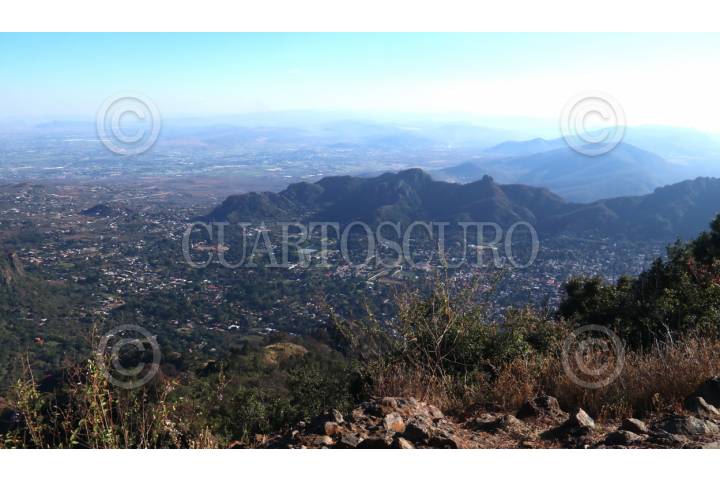 TEPOZTLÁN, MORELOS, 24ENERO2024.- Relieve de la cadena montañosa que corta el estado de norte a sur y que sirve de paso natural de fauna entre el Corredor Biológico Sierra de Chichinautzin y la Reserva de la Biosfera Sierra de Huautla. Imagen tomada desde el Cerro de la Luz a 2369 msnm. FOTO: MARGARITO PÉREZ RETANA/CUARTOSCURO.COM
