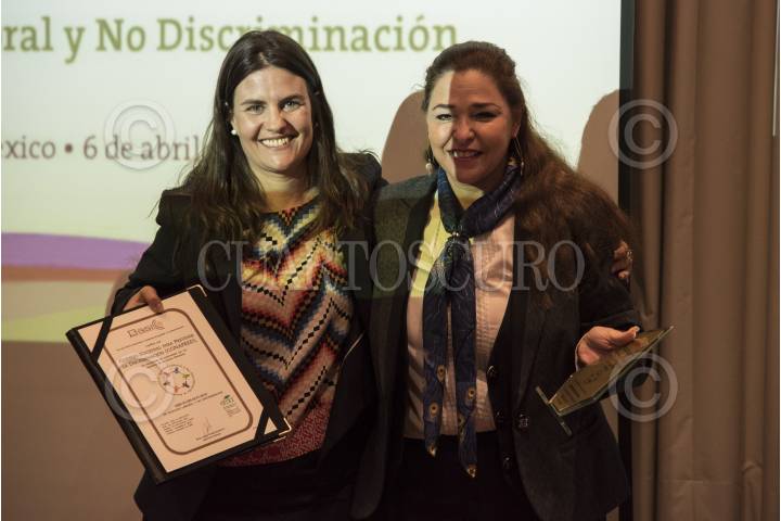 CIUDAD DE MÉXICO, 06ABRIL2017.- Alexandra Haas Paciuc, titular de la Conapred, durante la certificación en la Norma Mexicana NMX-R-025-SCFI-2015 en Igualdad Laboral y No Discriminación que adiquiró este organismo. En la imagen Atené Durán directora general del organismo certificador Basicco, le entrega su reconomimiento. FOTO: TERCERO DÍAZ /CUARTOSCURO.COM