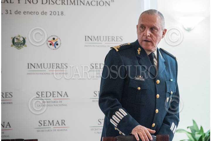 CIUDAD DE MÉXICO, 31ENERO2018.- Salvador Cienfuegos Zepeda, secretario de la Defensa Nacional, presidió la “Ceremonia de la Certificación (Nivel Oro) al ISSFAM”, otorgado por el Consejo Interinstitucional Integrado por personal de la STPS, Instituto Nacional de las Mujeres y el Consejo Nacional para Prevenir la Discriminación. FOTO: MARIO JASSO /CUARTOSCURO.COM