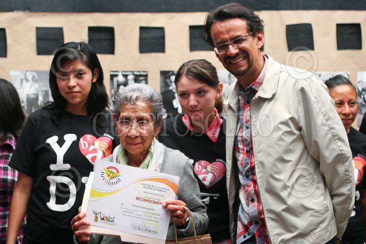 MÉXICO, D.F., 26FEBRERO2011.- Adultos que aprendieron a leer y escribir con los jóvenes de la brigada de alfabetización del Instituto de la Juventud recibieron reconocimientos, en el marco de la feria “Ciudad joven, ciudad feliz: Yo amo al DF”, realizada a un costado de la Alameda Central. FOTO: ISAAC ESQUIVEL/CUARTOSCURO.COM