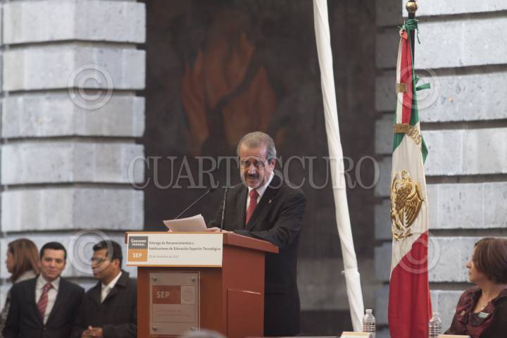 MÉXICO, D.F., 28NOVIEMBRE2012.- José Ángel Córdova Villalobos, secretario de Educación Pública, encabezó la entrega de reconocimientos a instituciones de educación superior tecnológica, en el patio de trabajos de la SEP. FOTO: MOISÉS PABLO /CUARTOSCURO.COM