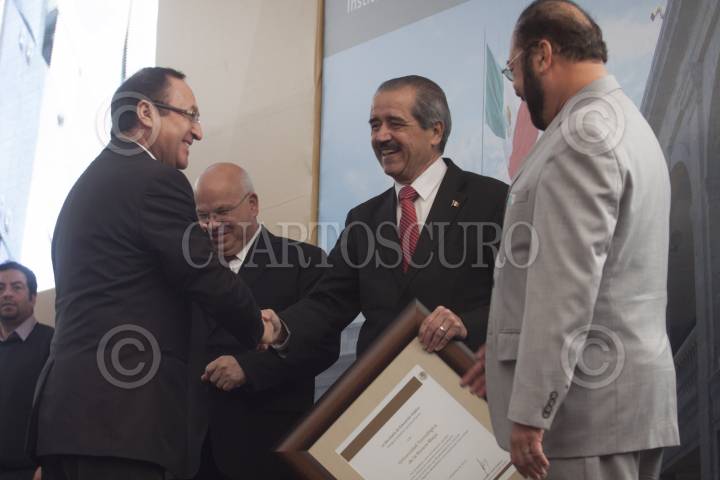 MÉXICO, D.F., 28NOVIEMBRE2012.- José Ángel Córdova Villalobos, secretario de Educación Pública, encabezó la entrega de reconocimientos a instituciones de educación superior tecnológica, en el patio de trabajos de la SEP. En la imagen se entrega el certificado correspondiente a la Universidad Tecnológica de la Riviera Maya. FOTO: MOISÉS PABLO /CUARTOSCURO.COM