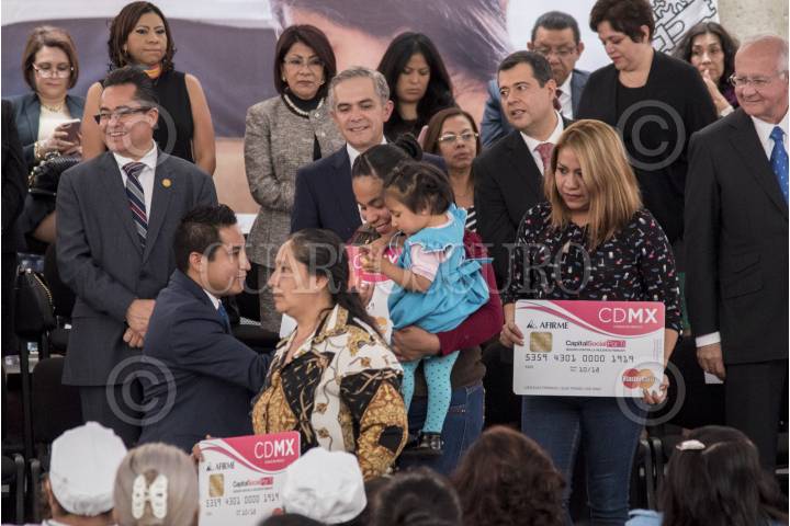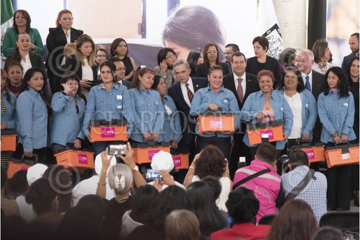 CIUDAD DE MÉXICO, 09MARZO2017.- Miguel Àngel Mancera Espinosa, Jefe de Gobierno, junto con otras autoridades y funcionarios públicos, encabezó la entrega de Kits de plomería, certificados de panaderas y Tarjetas de Seguro conta la Violencia a Mujeres y Mujeres Trans. Esto como parte de las actividades en conmemoración del Día Internacional de la Mujer. FOTO: TERCERO DÍAZ /CUARTOSCURO.COM