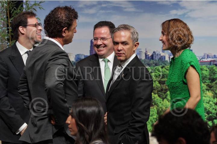 CIUDAD DE MÉXICO, 18JULIO2017.- Jesus Padilla, presidente de Coparmex, Humberto Lozano, presidente de Concanaco, Miguel Ángel Mancera, jefe de Gobierno local, y Tanya Müller, titular de Sedema, durante la entrega de certificados ambientales a empresas comprometidas con el medio ambiente, en el antiguo palacio de gobierno. FOTO: ISAAC ESQUIVEL /CUARTOSCURO.COM