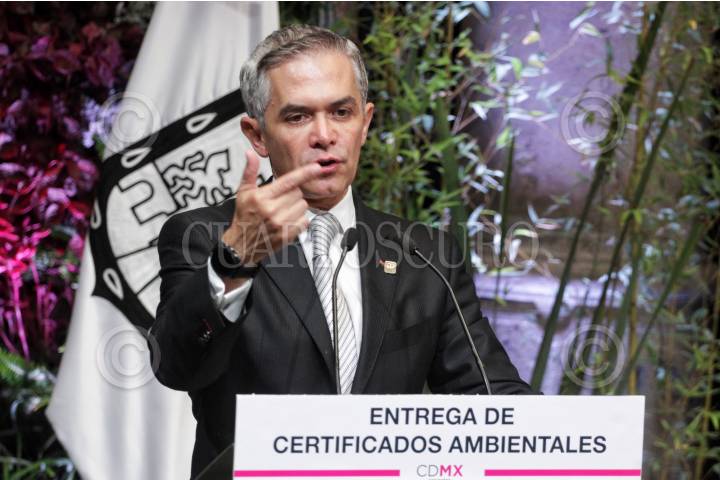 CIUDAD DE MÉXICO, 18JULIO2017.- Miguel Ángel Mancera, jefe de Gobierno local, durante la entrega de certificados ambientales a empresas comprometidas con el medio ambiente, en el antiguo palacio de gobierno. FOTO: ISAAC ESQUIVEL /CUARTOSCURO.COM