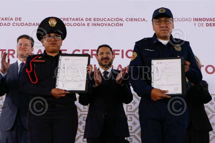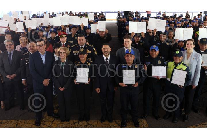 CIUDAD DE MÉXICO, 05OCTUBRE2023.- Martí Batres, jefe de Gobierno de la capital, encabezó la entrega de certificados a la primera generación de egresados del bachillerato policial de la Ciudad de México. FOTO: GOBIERNO DE LA CIUDAD DE MÉXICO/CUARTOSCURO.COM